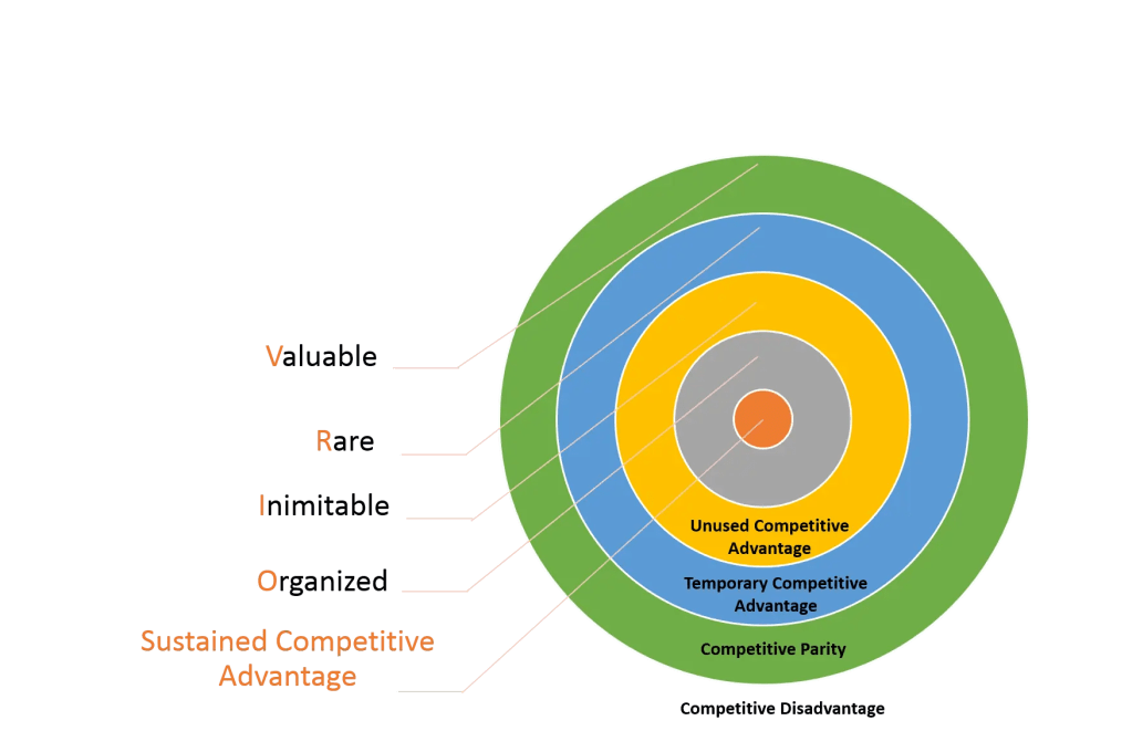 – Organization: This refers to how well a company is organized to exploit its resources and capabilities. If a company is well-organized, it can help the company to create a competitive advantage.