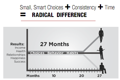 The final principle highlights the importance of time in the compound effect. The small improvements you make today might not seem like much, but over time they can lead to significant results.